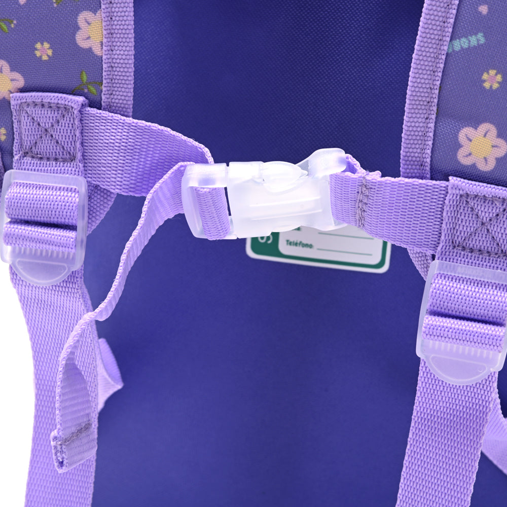 Mochila infantil termoformada con luz, confeccionada en neoprene resistente. Incluye correas reforzadas regulables, bolsillo externo para botella de agua y diseño práctico. Medidas: 22 × 30 × 10 cm.