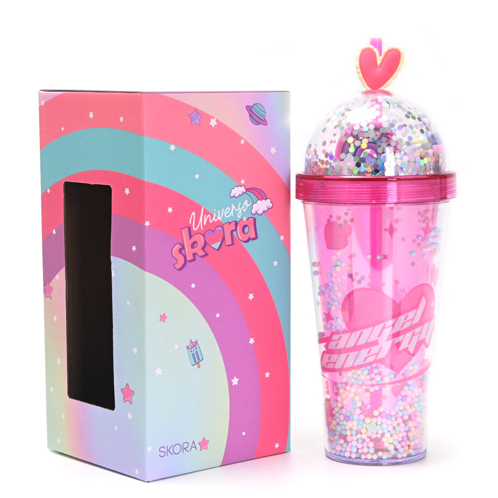 Un accesorio práctico y original, ideal para revendedores, locales de indumentaria y negocios de moda. El vaso plástico bicapa Angel Energy de 400ml incluye sorbete reutilizable y pin decorativo, combinando estilo y funcionalidad.