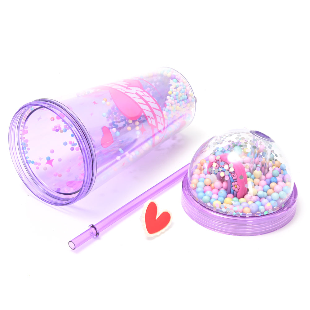 Vaso plástico bicapa con capacidad de 400ml. Incluye sorbete y pin decorativo.
