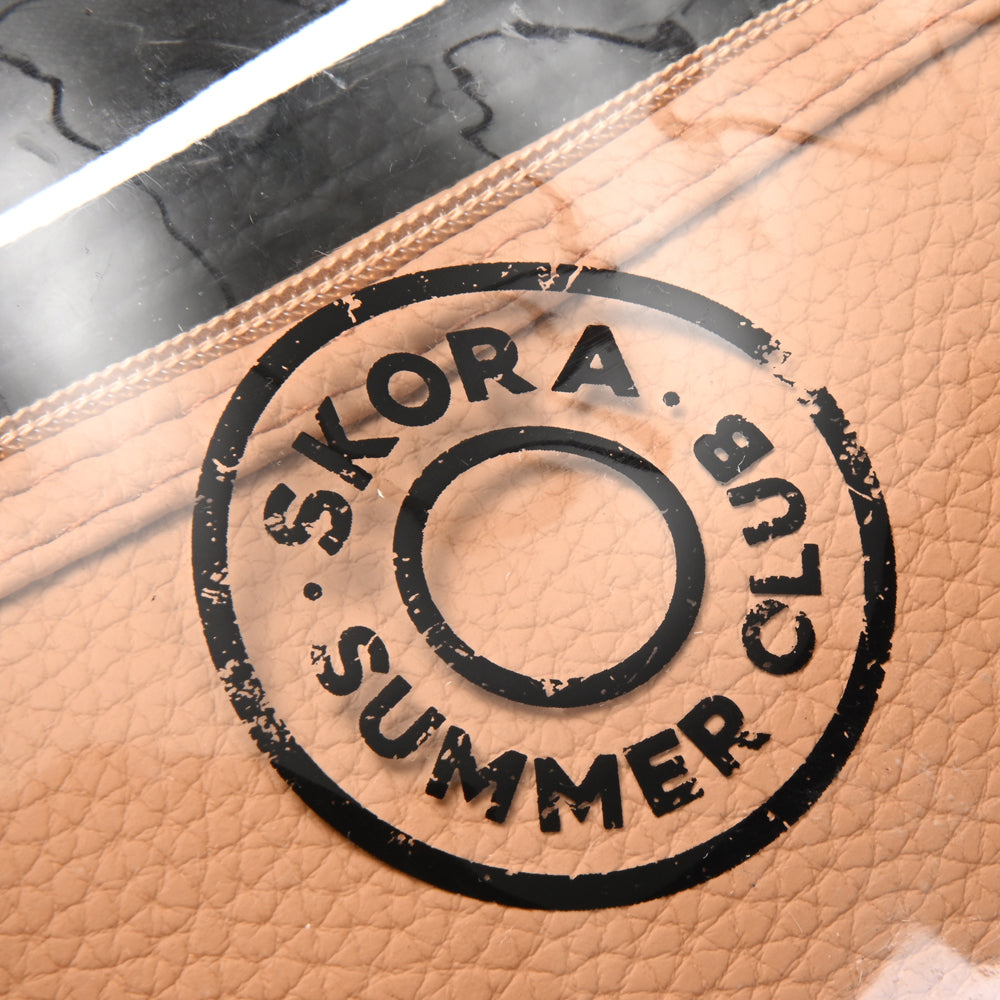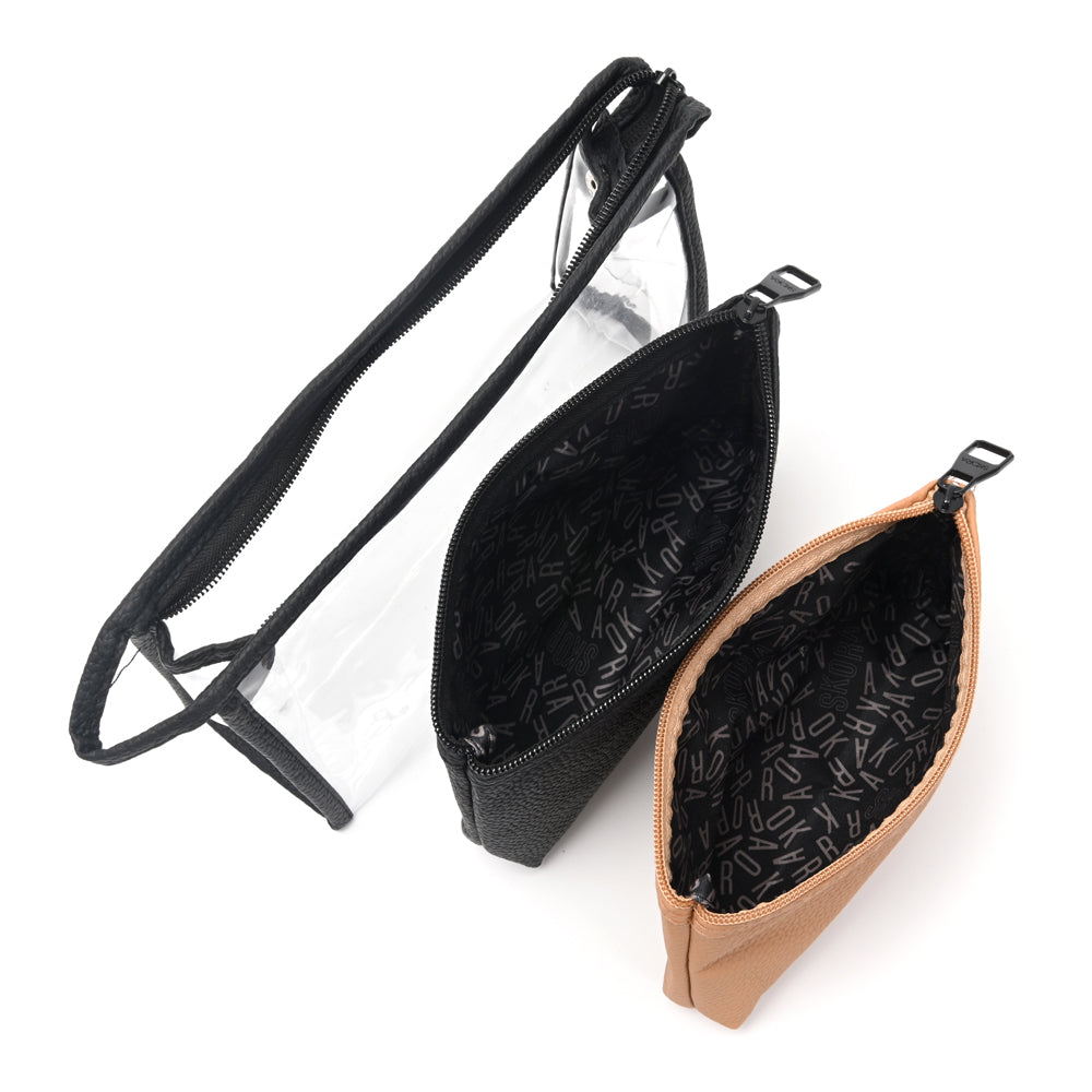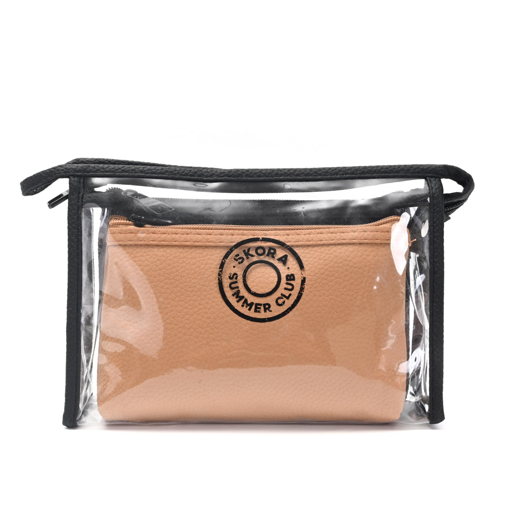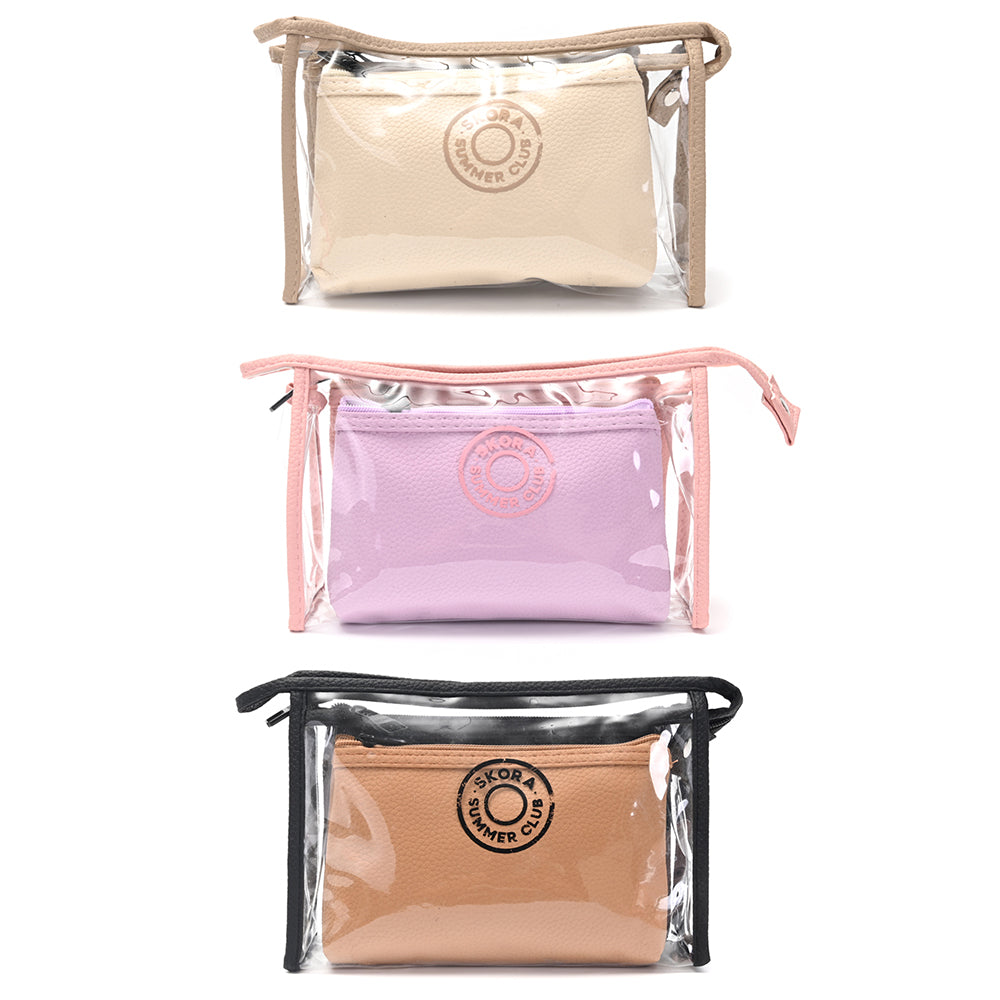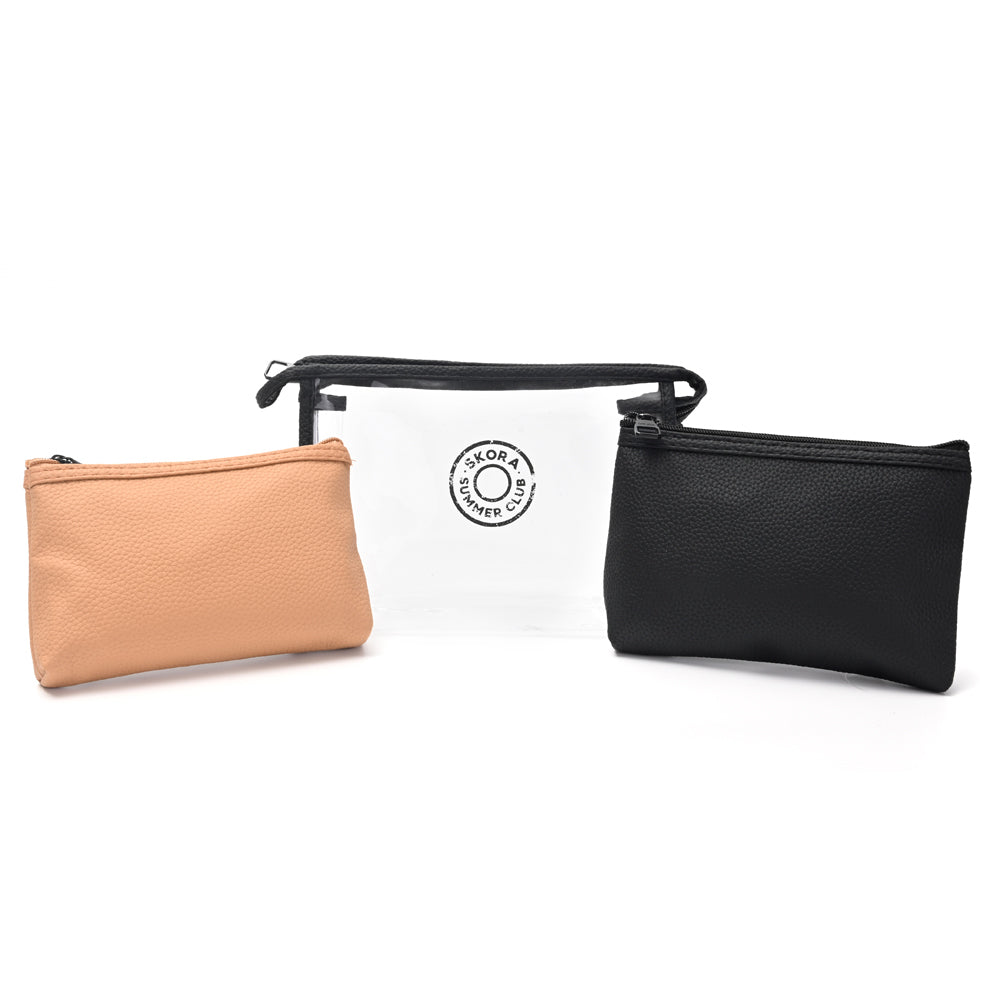 Neceser Anita de 3 piezas en PVC y cuero sintético con logo estampado. Diseño moderno y audaz que realza tu personalidad.
