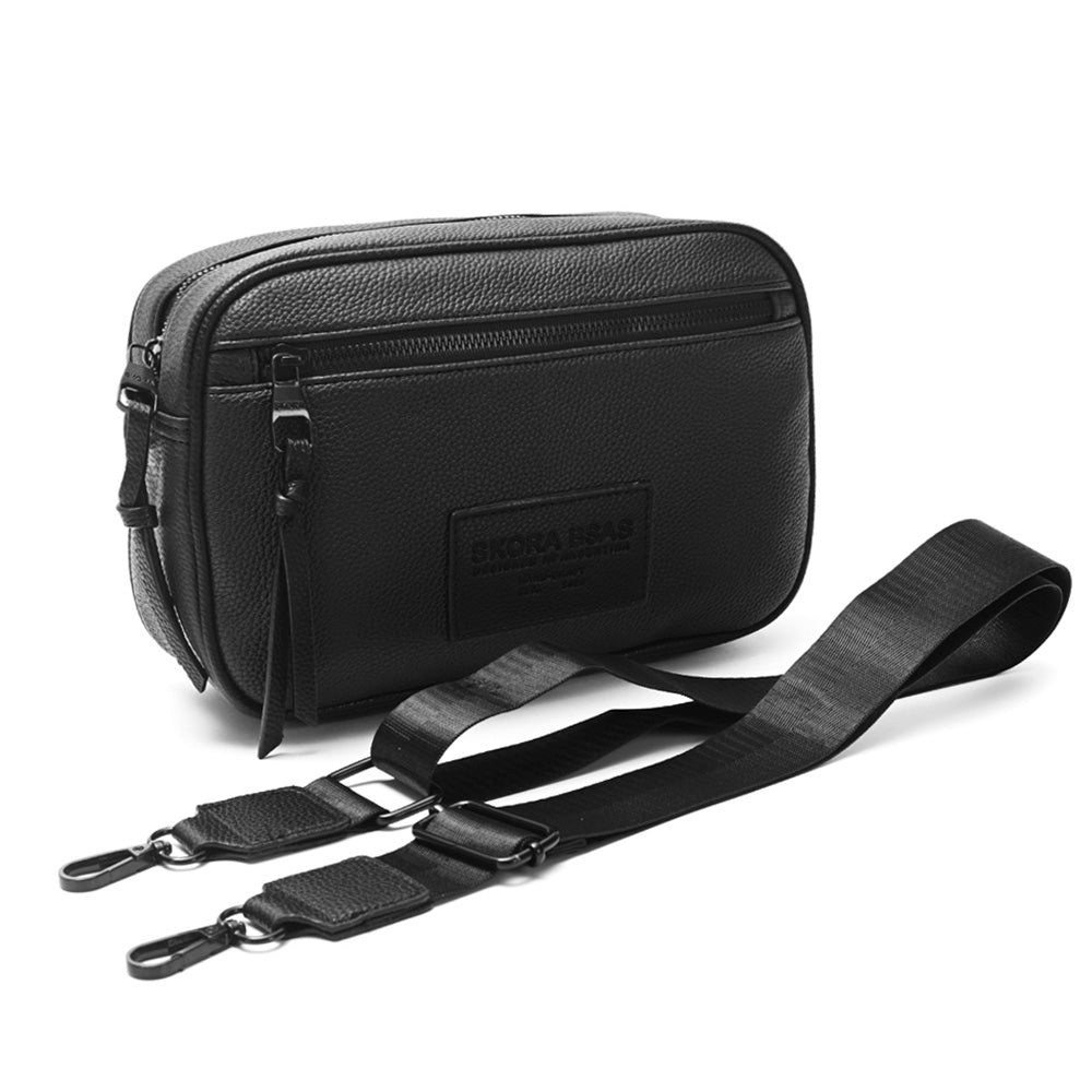 La bandolera Casablanca destaca por su diseño elegante y funcional. Confeccionada en eco cuero negro 100%, combina practicidad y estilo en un formato compacto. Posee correa regulable, cierre superior y espacio ideal para llevar lo esencial con comodidad y sofisticación.