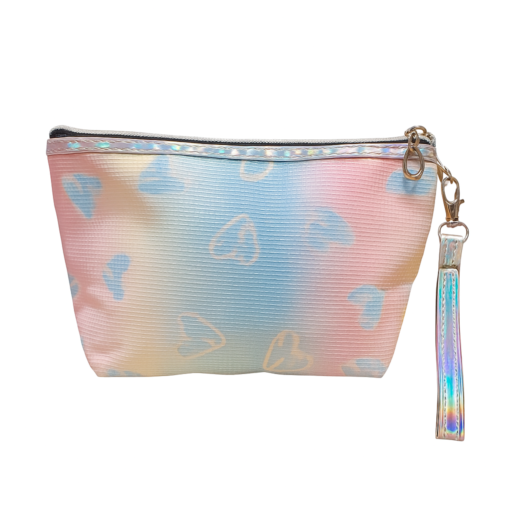 Neceser Coral portacosméticos confeccionado en poliéster tornasolado. Con interior forrado y llavero, es práctico, liviano y con un toque brillante para acompañar tu rutina diaria. Medidas: 23 x 13,5 cm.