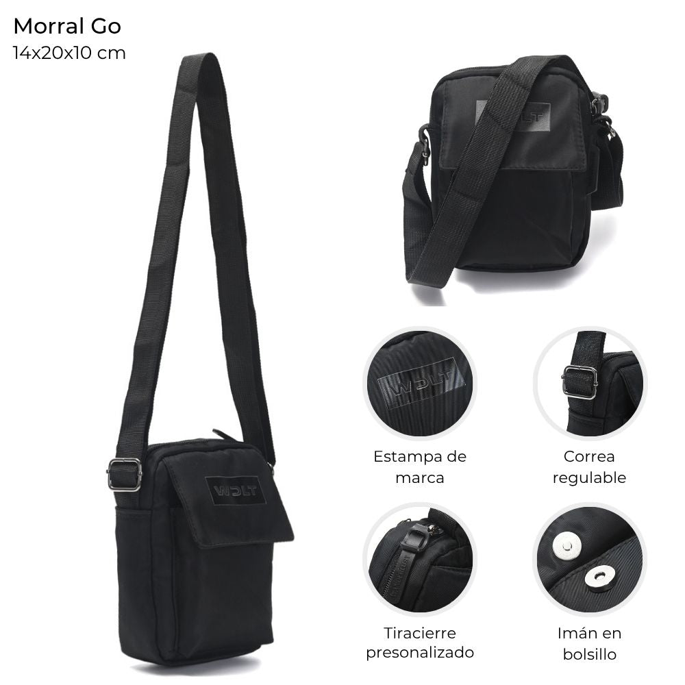 Morral Cross Urban confeccionado en tela de avión resistente. Incluye bolsillo con cierre magnético y estampa de la marca engomada. Medidas: 14 x 20 x 10 cm. Diseño moderno y compacto, ideal para un estilo urbano y funcional.