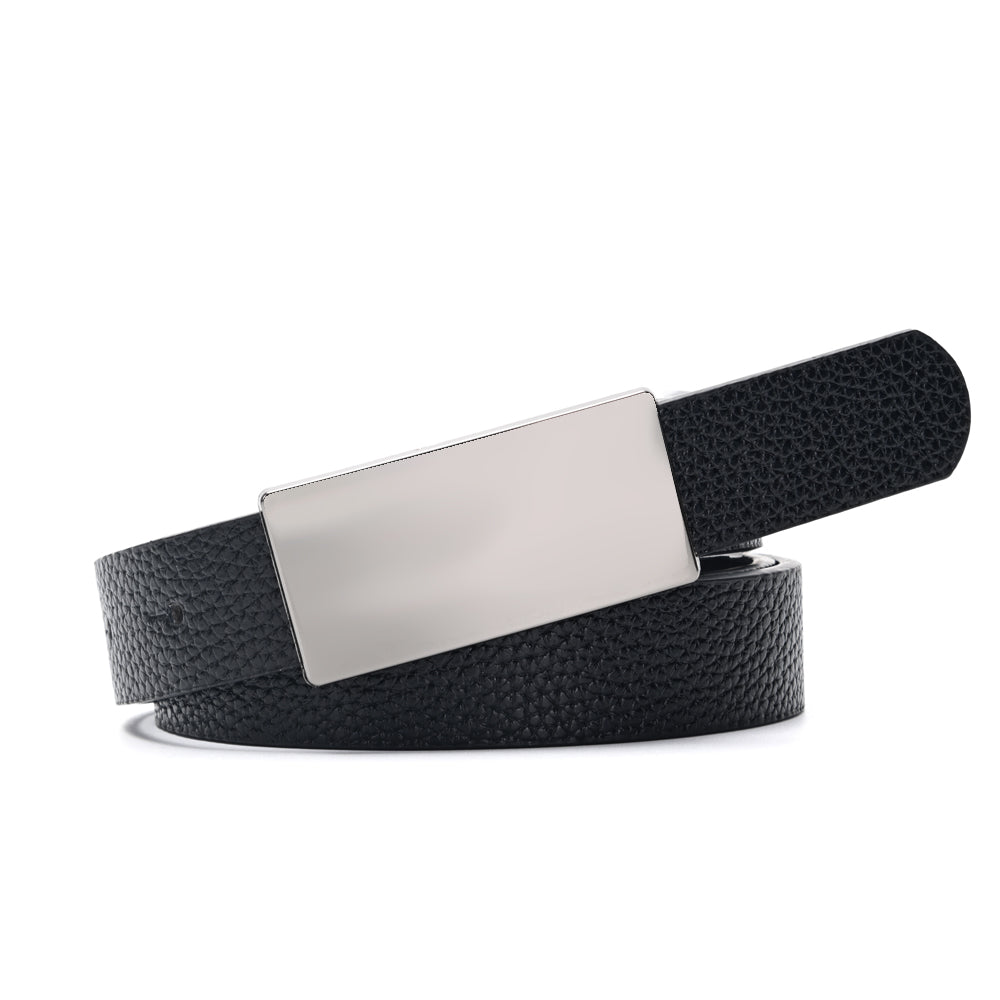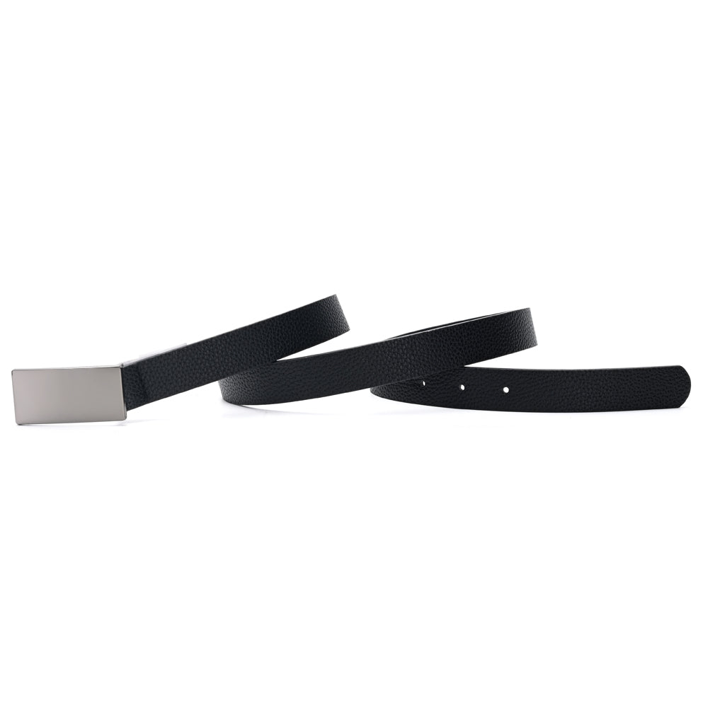 Cinto Electra en cuero PU resistente, con hebilla de metal niquelado que aporta estilo y durabilidad para cualquier ocasión.