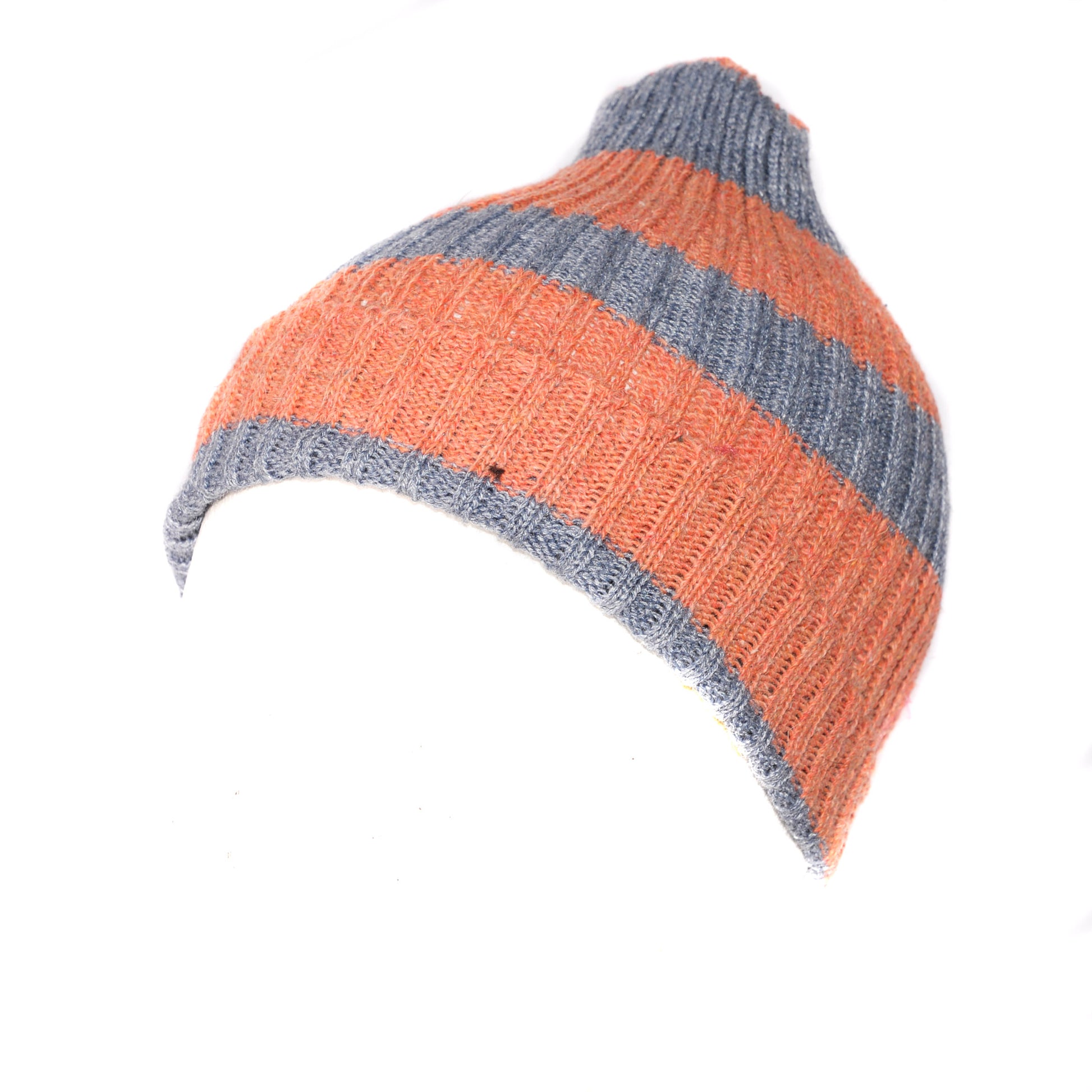 Gorro tejido a rayas anchas en tonos gris y naranja
