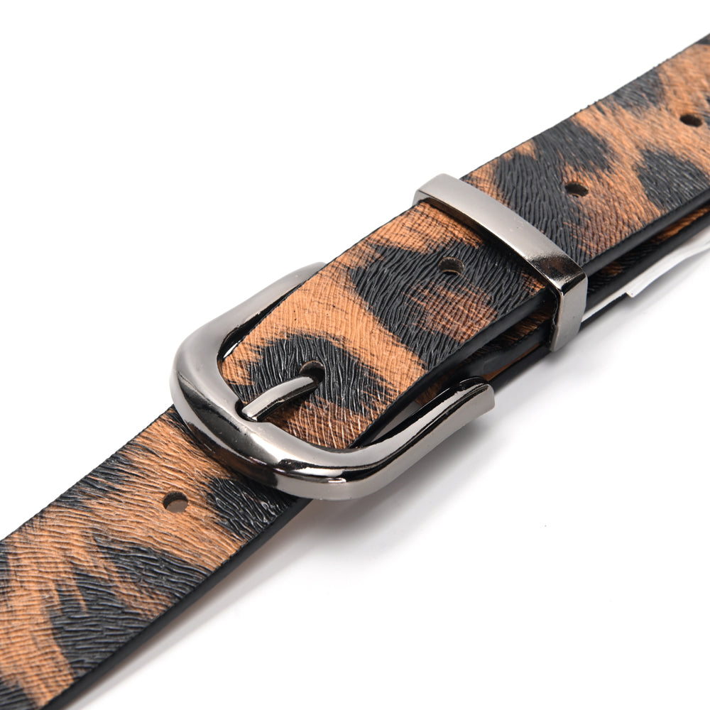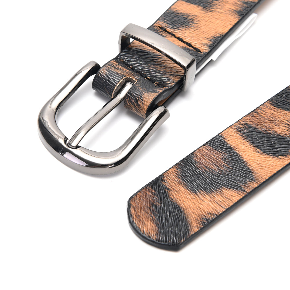 Cinto Oriana en cuero PU resistente, con hebilla de metal niquelado que aporta estilo y durabilidad para cualquier ocasión.