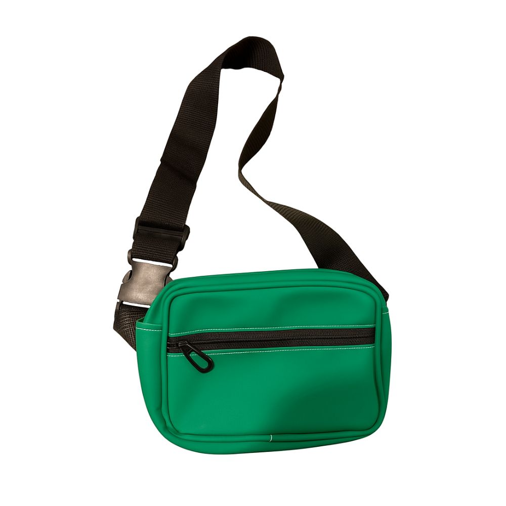 Riñonera Kora confeccionada en tela de avión engomada. Con correa regulable y práctico bolsillo frontal, es cómoda y resistente para acompañarte en cualquier ocasión. Medidas: 17 x 13 cm.