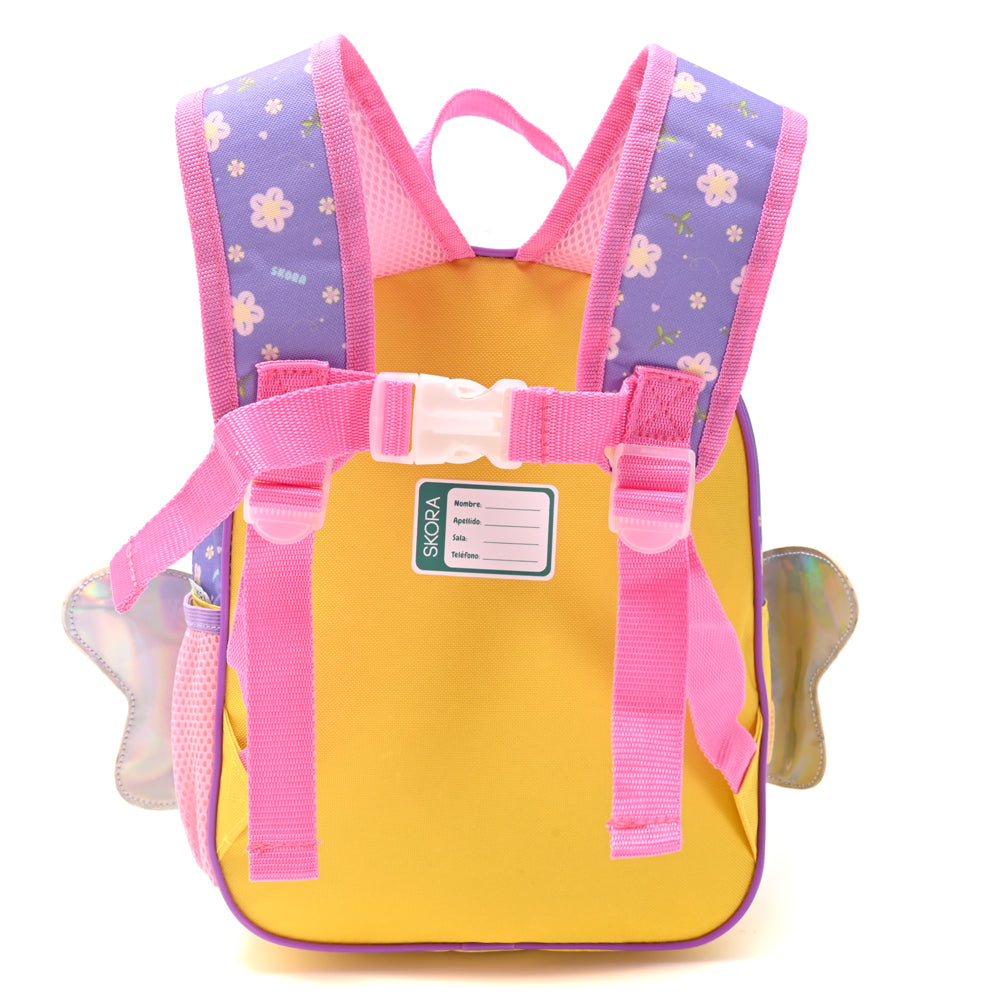 Mochila infantil Mayu termoformada con luz incorporada. Confeccionada en neoprene resistente, con correas reforzadas regulables y bolsillo externo para botella. Medidas: 22 x 30 x 10 cm. Ideal para la escuela y paseos divertidos.