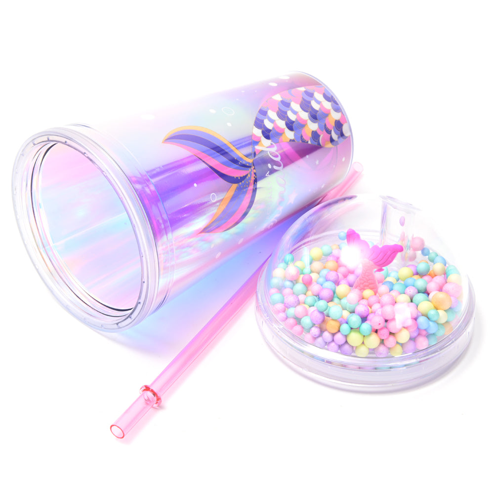 Este vaso holográfico de 500ml con sorbete es perfecto para que las niñas disfruten sus bebidas con un toque mágico y divertido. Ideal para acompañar momentos llenos de color y fantasía.