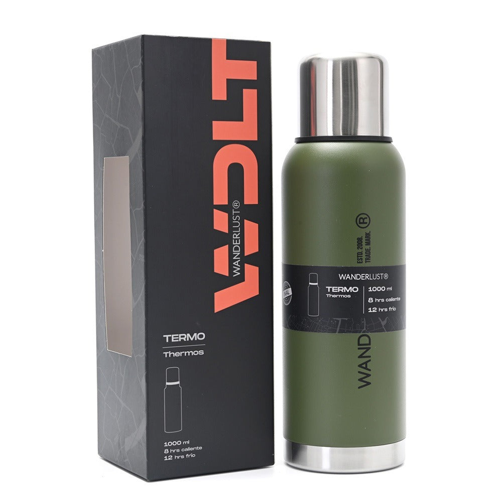 Termo Militar Wander de 1000 ml, con doble capa de aluminio. Mantiene líquidos calientes hasta 8 horas y fríos por 6 horas. Incluye práctico pico dosificador que evita derrames y permite servir con precisión. Ideal para mate o bebidas en movimiento.