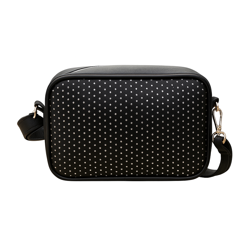 La bandolera Neo Luna en cuero sintético con brillos cautiva en cada detalle, mientras su correa regulable te permite llevarla con actitud y libertad.