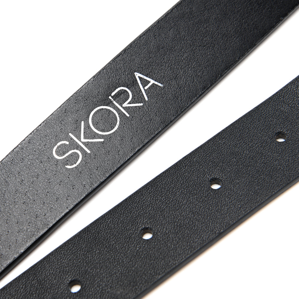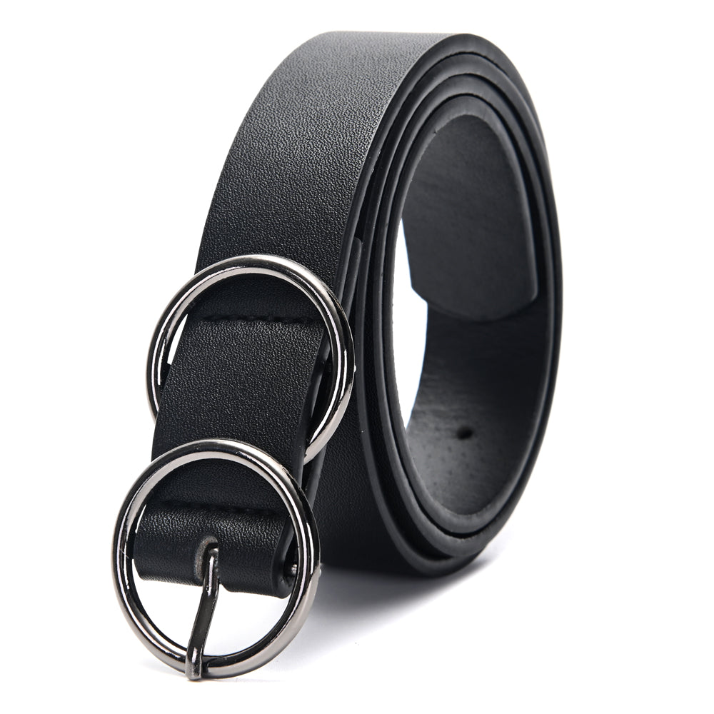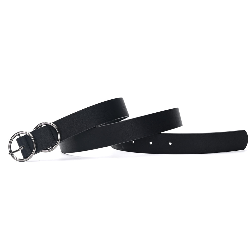 Cinto Oriana en cuero PU resistente, con doble hebilla de metal níquelado que aporta estilo y durabilidad para cualquier ocasión.