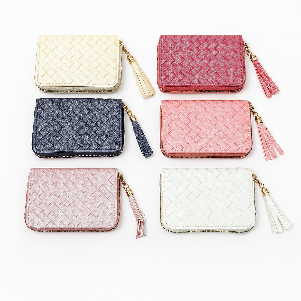 Pack de 6 billeteras Nova confeccionadas en cuero sintético con acabado brillante. Incluye colores surtidos de los más vendidos. Medidas: 9,5 x 13,5 cm. Accesorios prácticos y modernos para el uso diario.