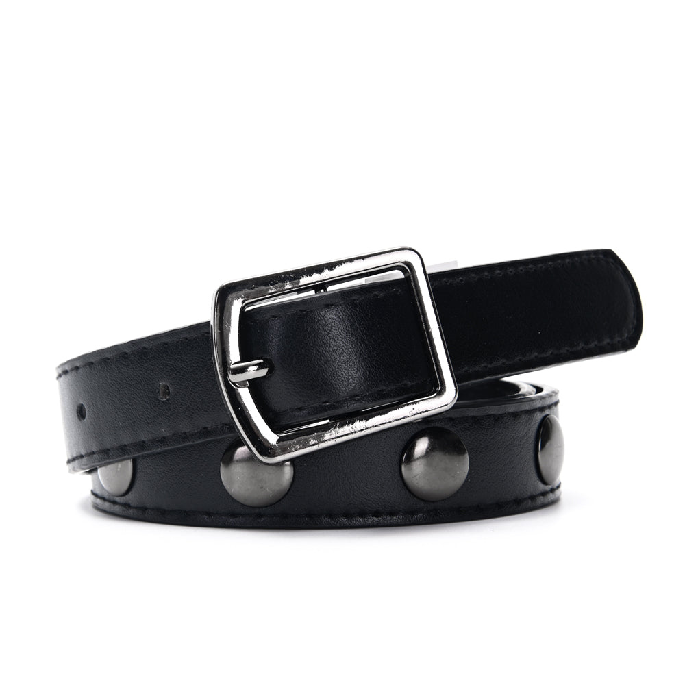 Cinto Peach en cuero PU resistente, con hebilla y tachas de metal niquelado que aporta estilo y durabilidad para cualquier ocasión.