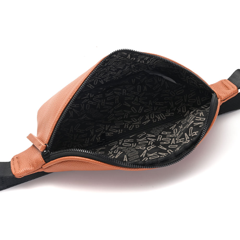 Riñonera Agadir, confeccionada en cuero PU de alta calidad. Presenta un cierre único seguro, logo en goma y correa regulable que se adapta cómodamente. Medidas: 27 x 16,5 x 6 cm. Un diseño versátil y moderno para el día a día.