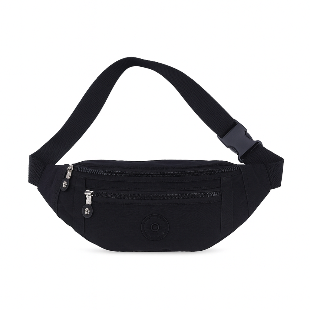 Riñonera OnyxCharm, confeccionada en resistente tela de avión. Incluye múltiples bolsillos que permiten organizar tus objetos personales y correa regulable para un ajuste cómodo. Medidas: 15 x 20 cm. Un accesorio compacto, moderno y funcional.