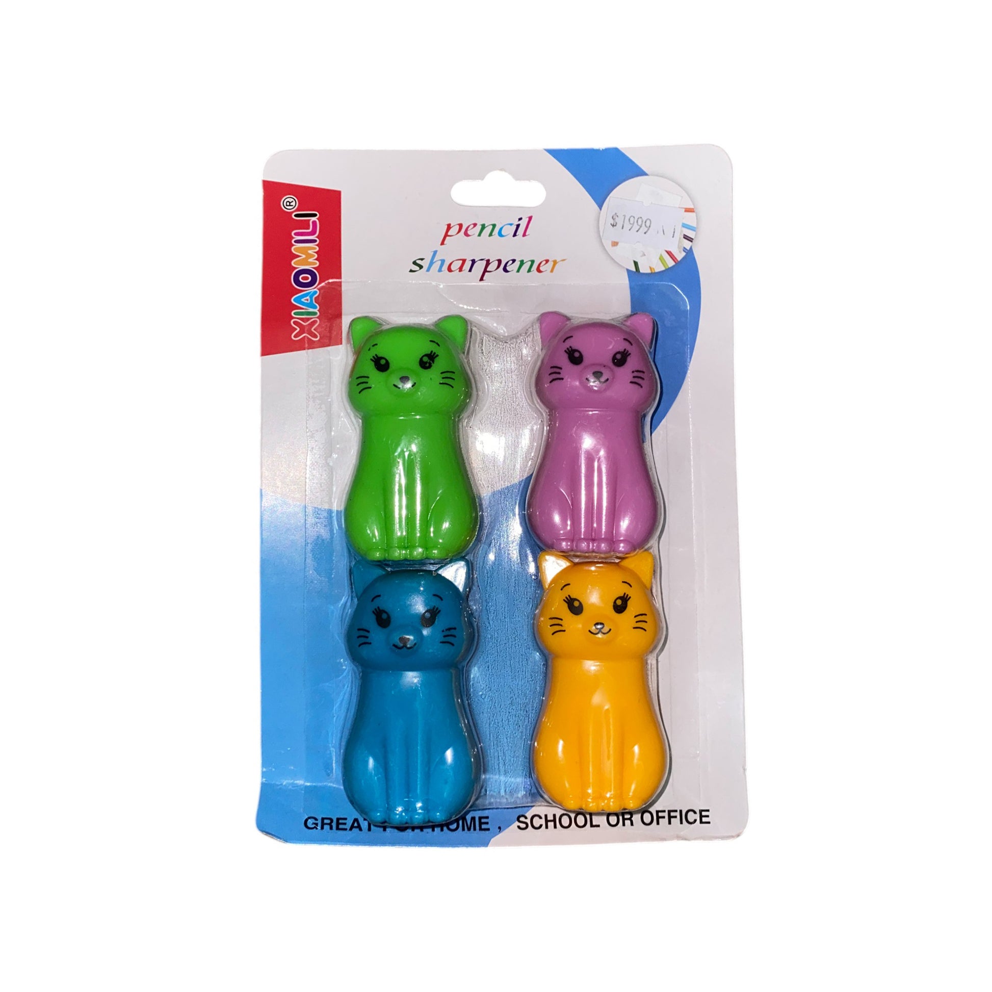 Pack de 4 sacapuntas escolares Kitty, fabricados en plástico resistente. Diseño práctico y seguro, ideal para el uso diario de los chicos en la escuela o en casa.