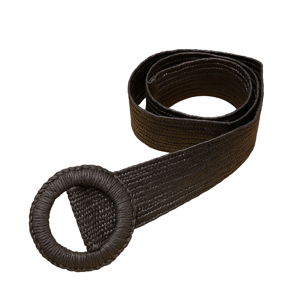 Cinto Terranova, confeccionado en yute elastizado que brinda comodidad y estilo natural. Presenta hebilla tejida que suma un detalle artesanal y distintivo a cualquier look. Medidas: 4,5 x 107 cm. Un accesorio versátil y divertido para realzar outfits casuales y de verano.