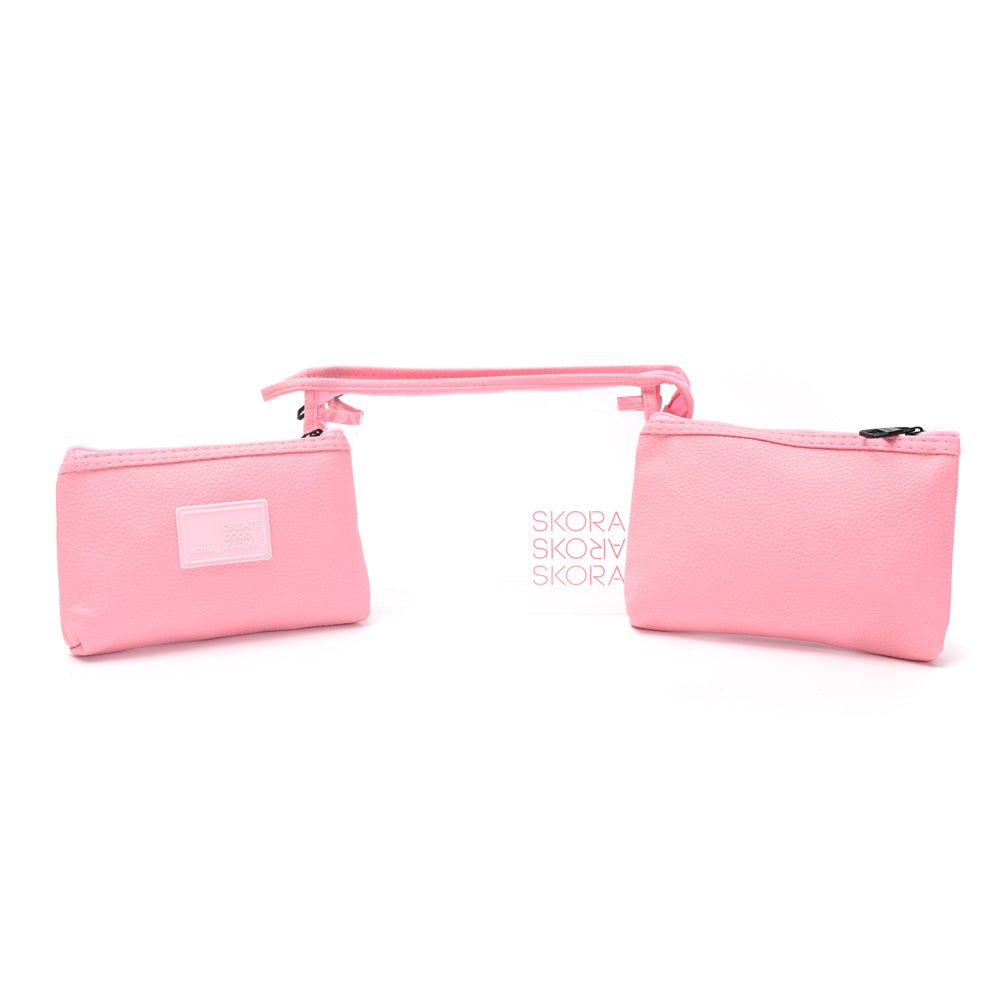 Neceser Tini de 3 piezas en PVC y cuero sintético con logo estampado. Diseño moderno y audaz que realza tu personalidad.
