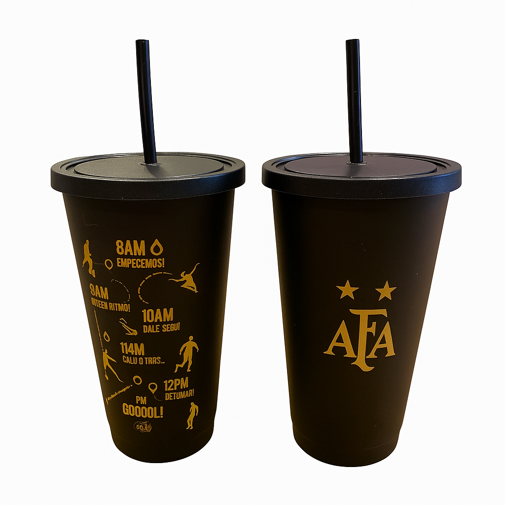 Vaso plástico Afa, capacidad de 500ml. Incluye tapa y sorbete.