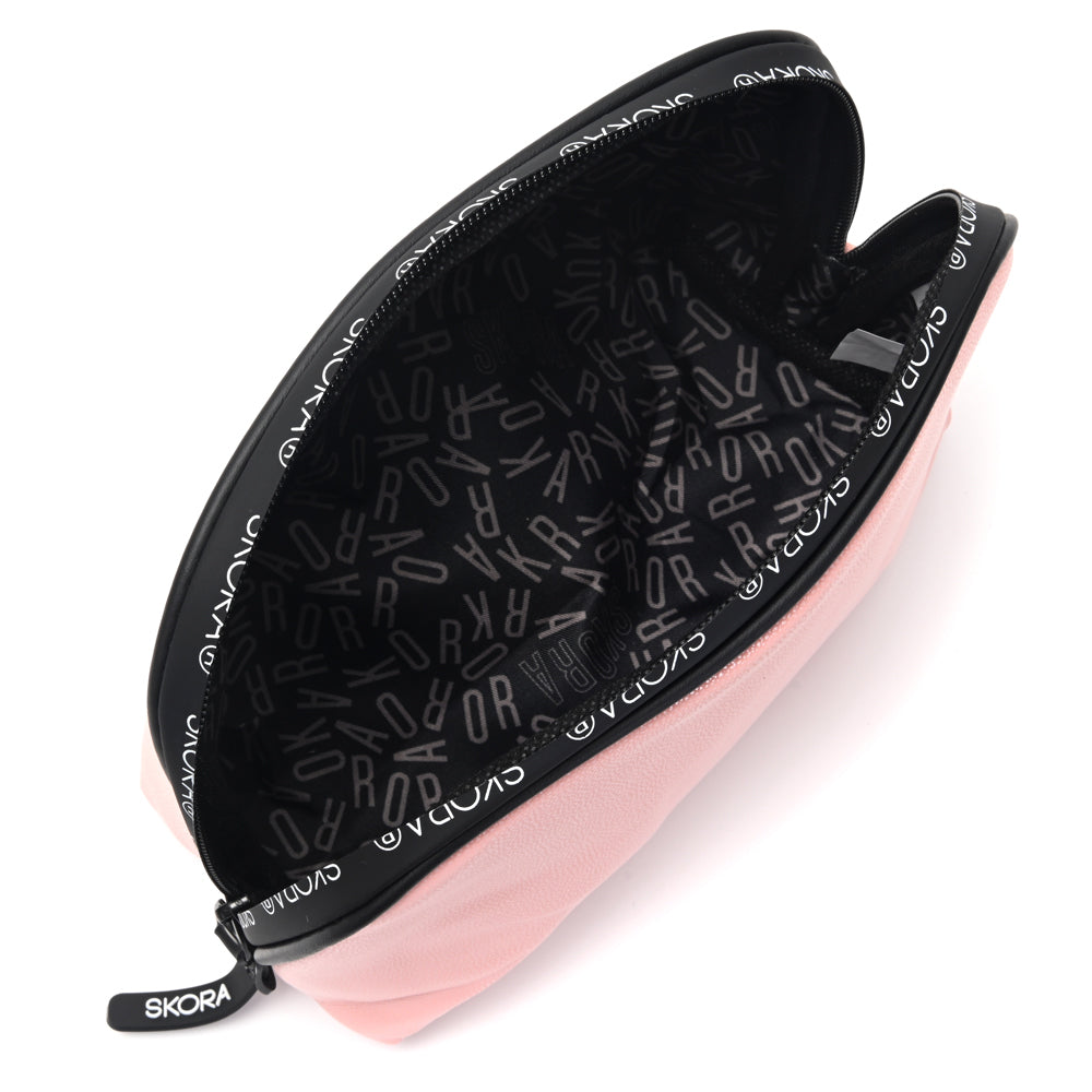El porta cosméticos Yara combina tela de avión engomada y cierre termosellado con logo, para un estilo audaz y protección total en cada uso.